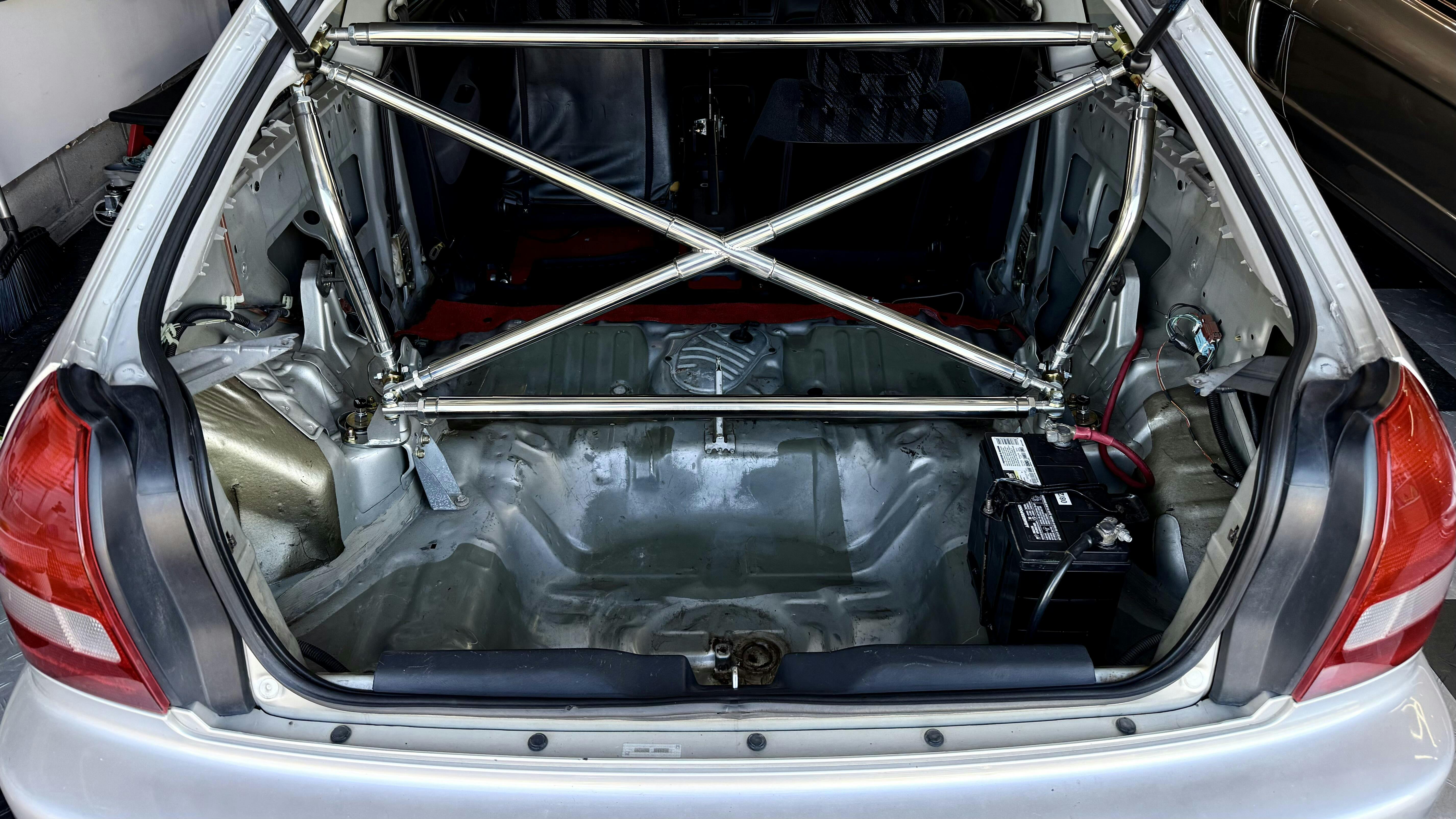 Enhance both the look and structural rigidity of your Civic EK9 with this premium Crossbar X-Bar. Designed to reinforce key stress points of your chassis, this X-bar helps reduce body flex during hard cornering while maintaining full rear seat functionality. It’s the perfect combination of style and performance for street and track enthusiasts.