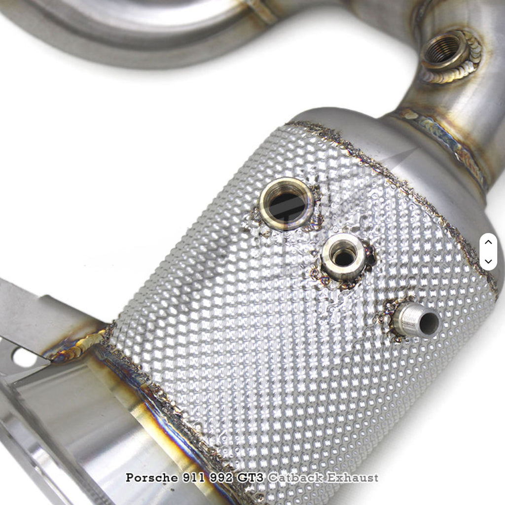 Upgrade exhaust flow, heat management, and performance on your Porsche 911 992 GT3 / GT3 RS with the STRATEC Catted Exhaust Manifold & Downpipe System. Designed for the 4.0L naturally aspirated flat-six, this setup improves exhaust scavenging, reduces backpressure, and enhances throttle response while delivering a sharper, more aggressive motorsport exhaust tone.