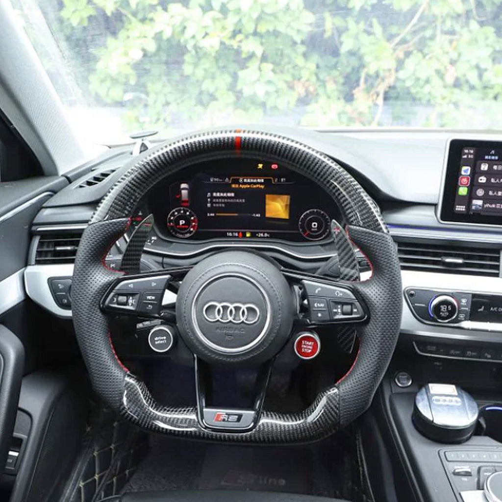 Upgrade the interior of your Audi R8 with the STRATEC Carbon Fiber Steering Wheel, designed to enhance both driving feel and visual appeal. Crafted with genuine carbon fiber accents, this steering wheel delivers a race-inspired look while maintaining a refined, OEM-plus finish that complements the R8’s interior design.
