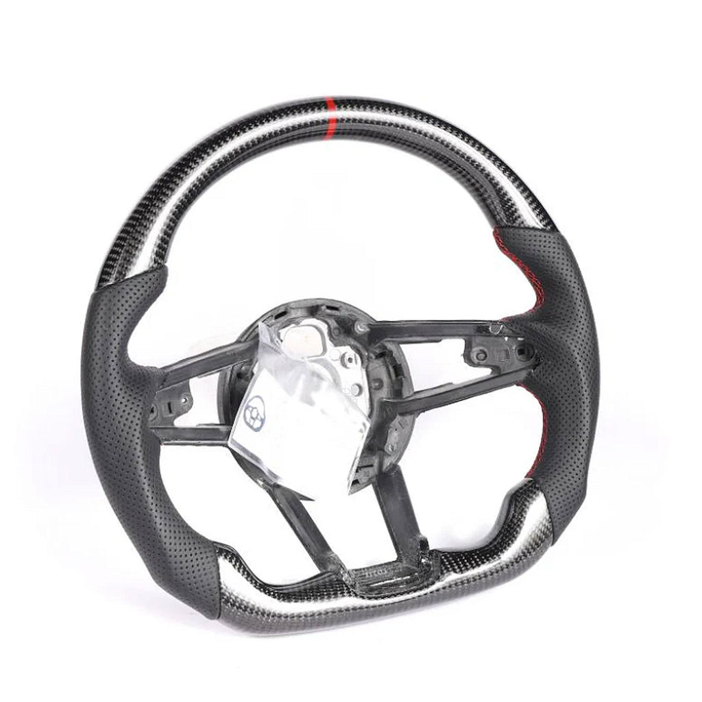 Designed with the driver in mind, the steering wheel provides an ergonomic grip and confident control, offering precise feedback whether driving on the street or the track. The carbon fiber construction adds a lightweight, performance-focused touch while elevating the overall cabin aesthetic.