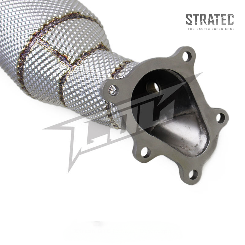 Designed for the 3.8L Twin‑Turbo V6 platform, this downpipe improves exhaust flow to promote faster turbo spool, sharper throttle response, and stronger mid‑range power. The integrated high‑flow catalytic converter offers improved performance over stock while maintaining smoother drivability compared to catless setups.